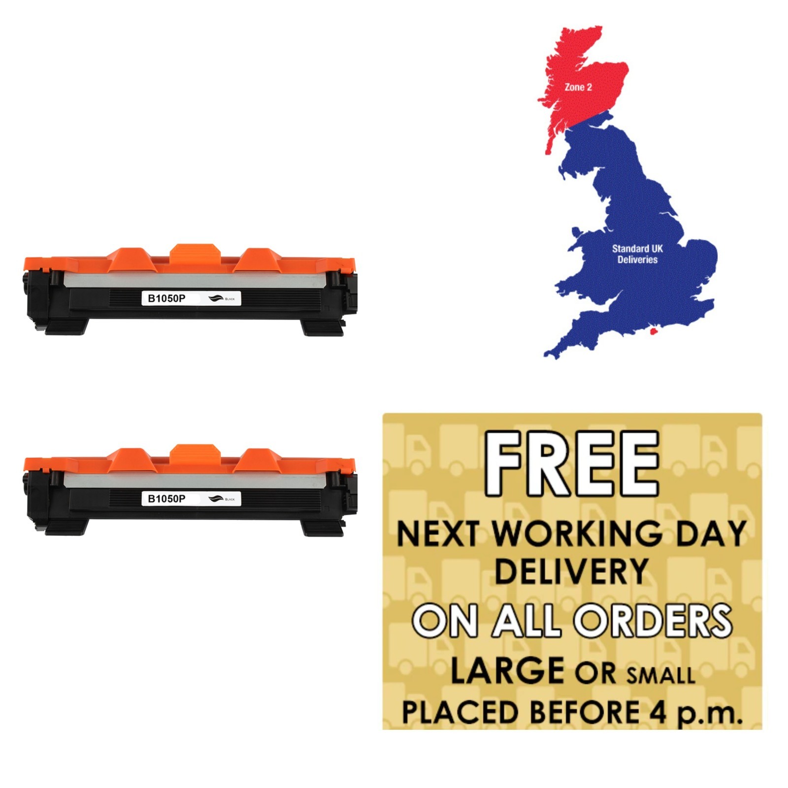 Toner Fits Brother DCP-1512 Printer TN1050 Laser Cartridge Compatible Black 2 Pk