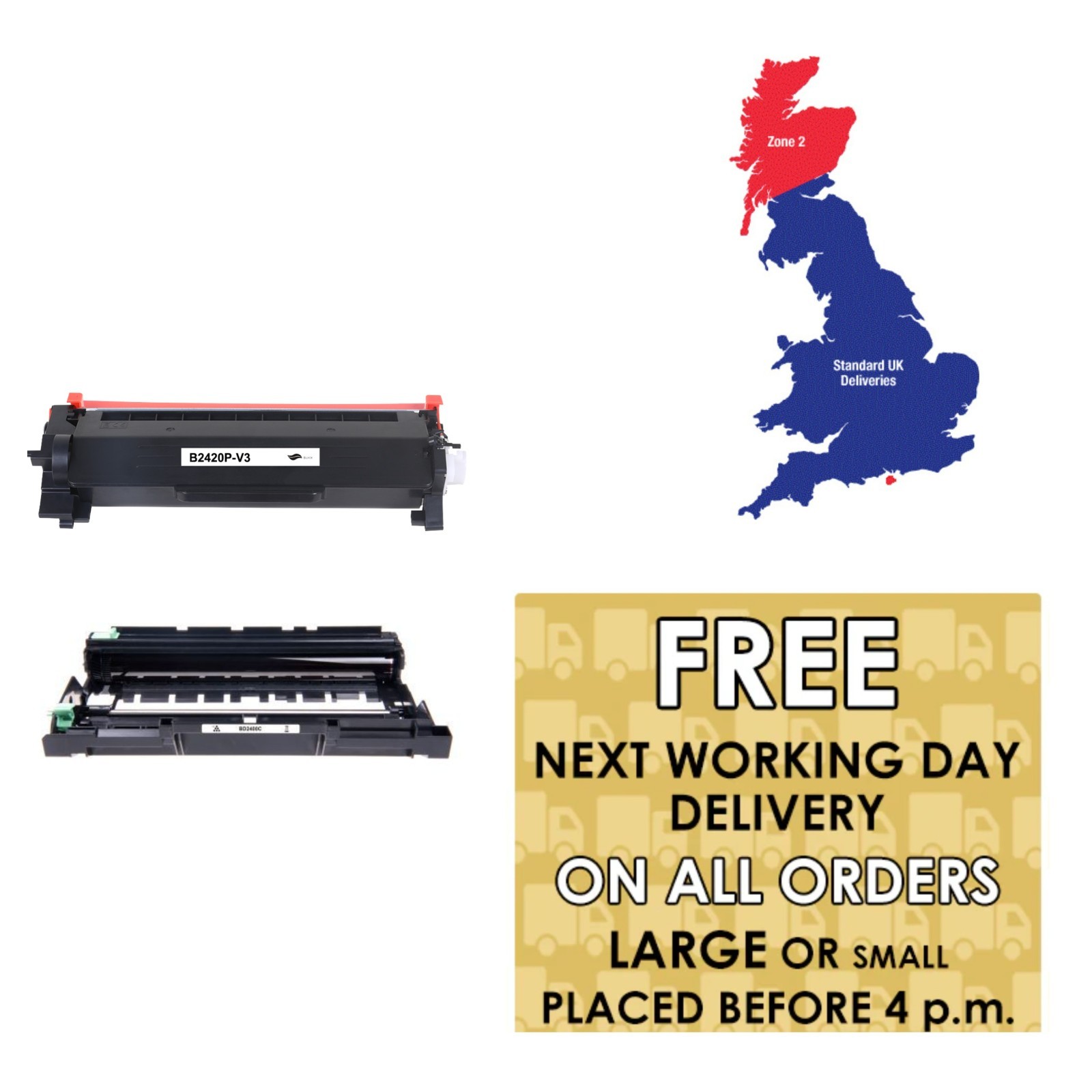 Fits BROTHER MFC-L2710DW Printer Toner cartridges TN2420 & 1 Drum Compatible