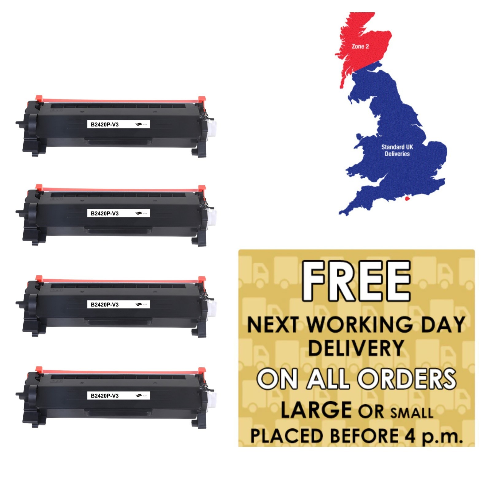 Toner Fits BROTHER MFC-L2750DW Printer TN2420 Cartridge Black Compatible 4 Pack