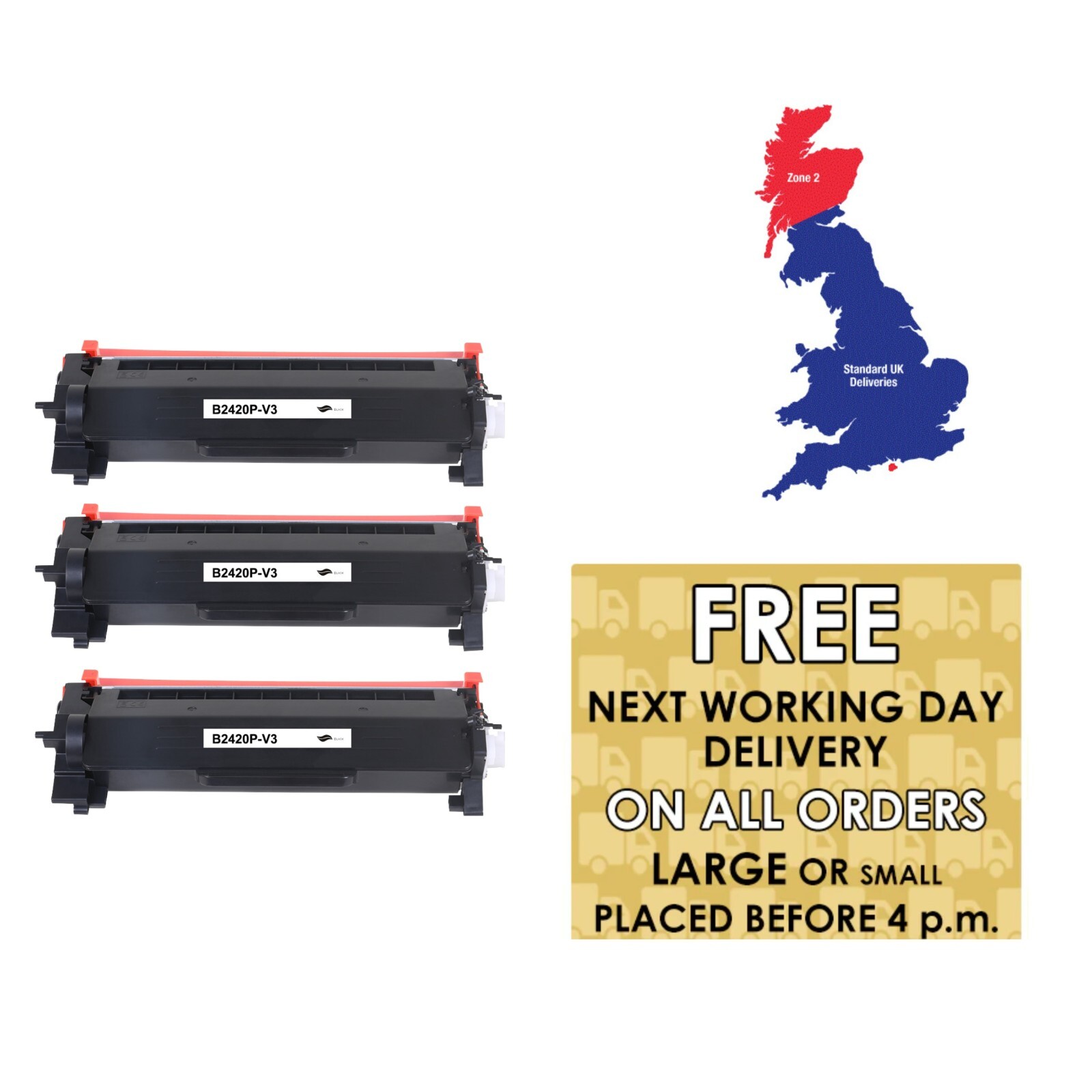 3 x BLACK High Cap Compatible TONER TN2420 fits BROTHER HL-L2370DN Printer