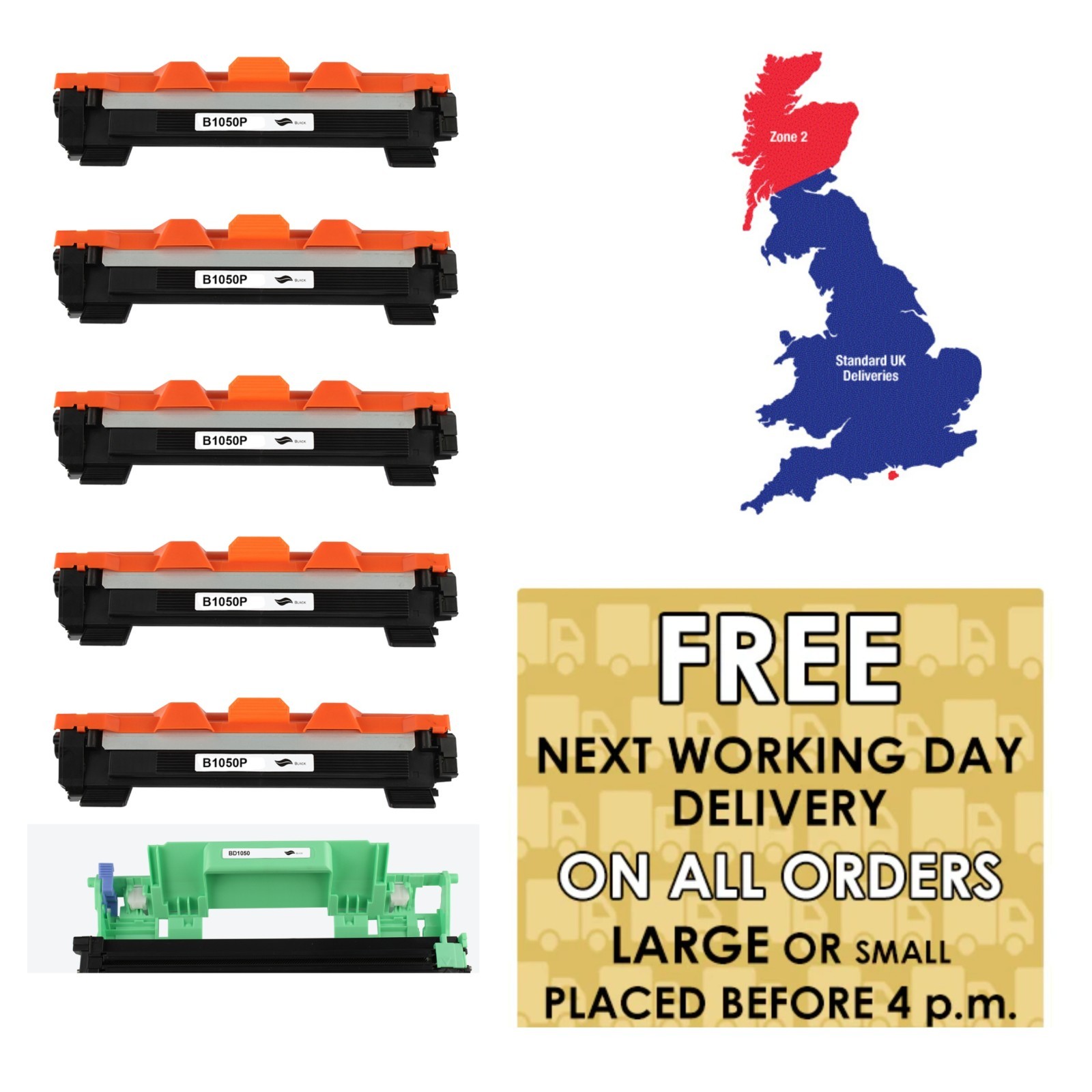 Toner For Brother DCP-1612W Printer TN1050 Cartridge x 5 & 1 x Drum Compatible