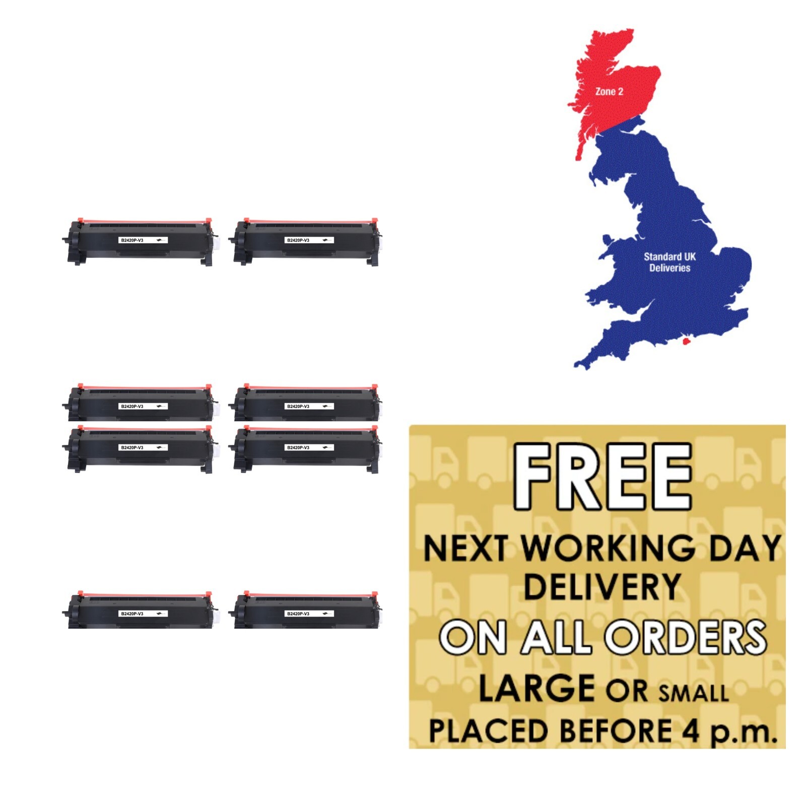 8 x Black Toner Cartridge Compatible TN2420 Fits BROTHER MFC-L2750DW Printer