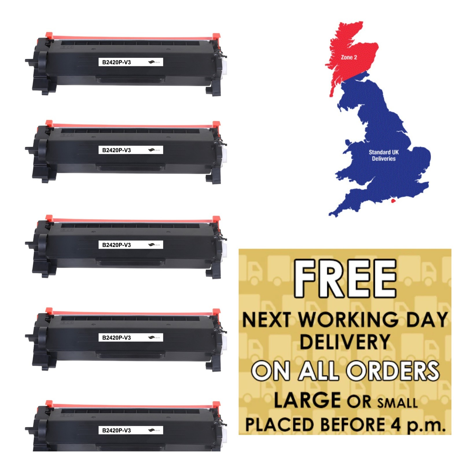 Toner for Brother DCP-L2530DW Printer TN2420 Black High Cap Compatible 5 Pack