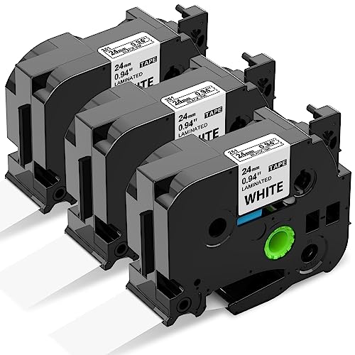 3x Upwinning Tz Tape 24mm AZe-251 TZe-251 TZe251 Compatible with Brother P-Touch Tape 24mmx8m White Laminated, Replace for Brother Label Printer Refill 24mm for P Touch D600 E550W P700 P750W 2430 H500