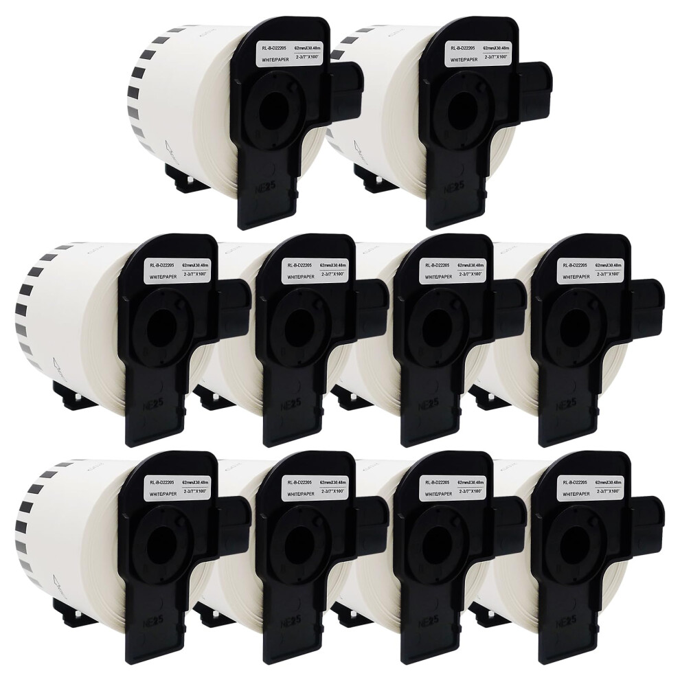 10 Rolls DK-22205 Labels 62mm(W) x 30.48m(L) 4000 Standard Address White Sticker Labels Compatible with Brother QL-800 820NWB 500 500BS 1060N 700 720NW 810W 1050N 1100NWB Label Printers