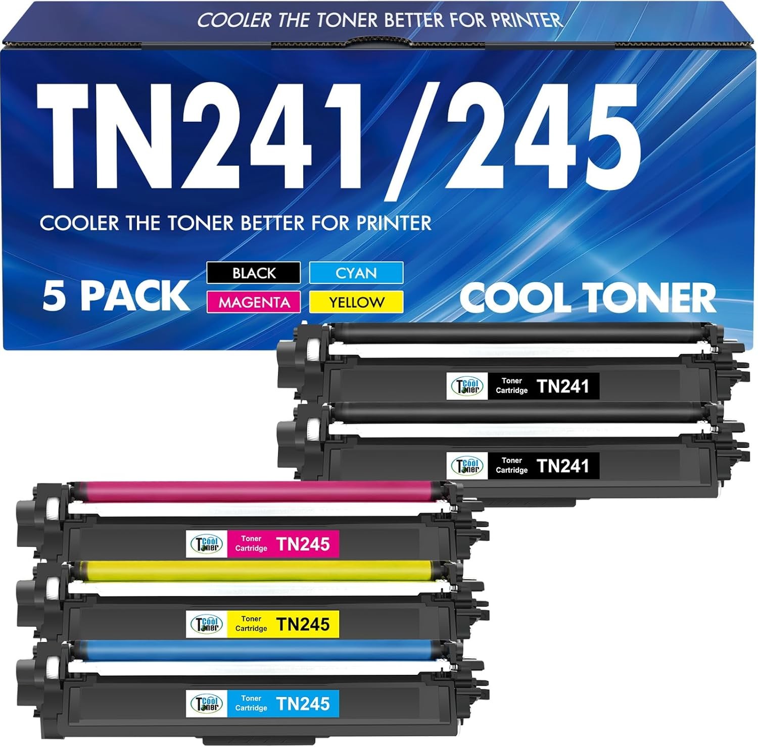 TN241 TN245 Toner Compatible for Brother TN-241 TN-245 TN241BK for Brother DCP 9020CDW 9015CDW MFC 9330CDW 9340CDW HL 3140CW 3150CDW 3170CDW DCP-9020CDW (Black Cyan Magenta Yellow, 5-Pack)