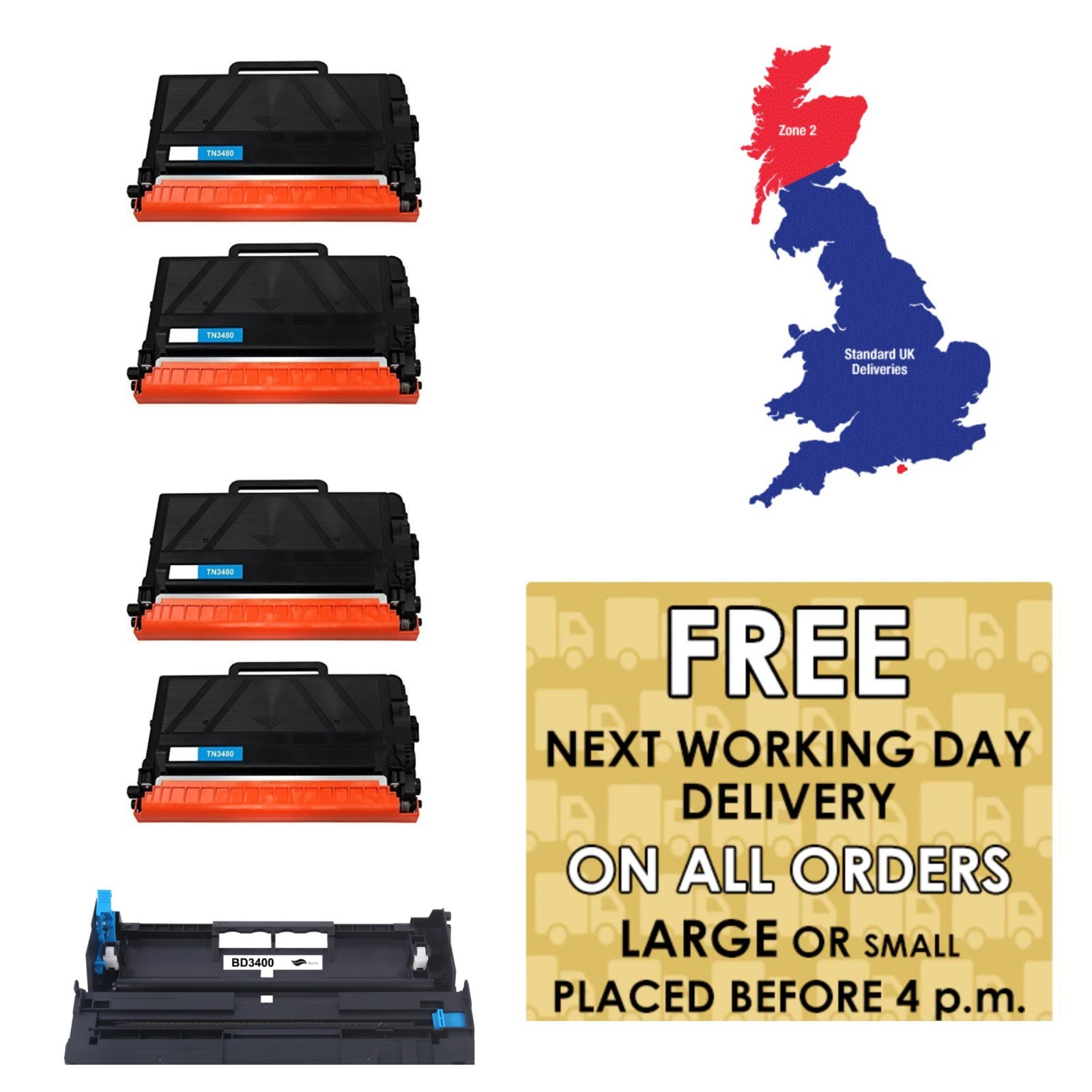 4 x Toner For Brother HL-L6400DWT Black Cartridge TN3430 & 1 x Drum Compatible