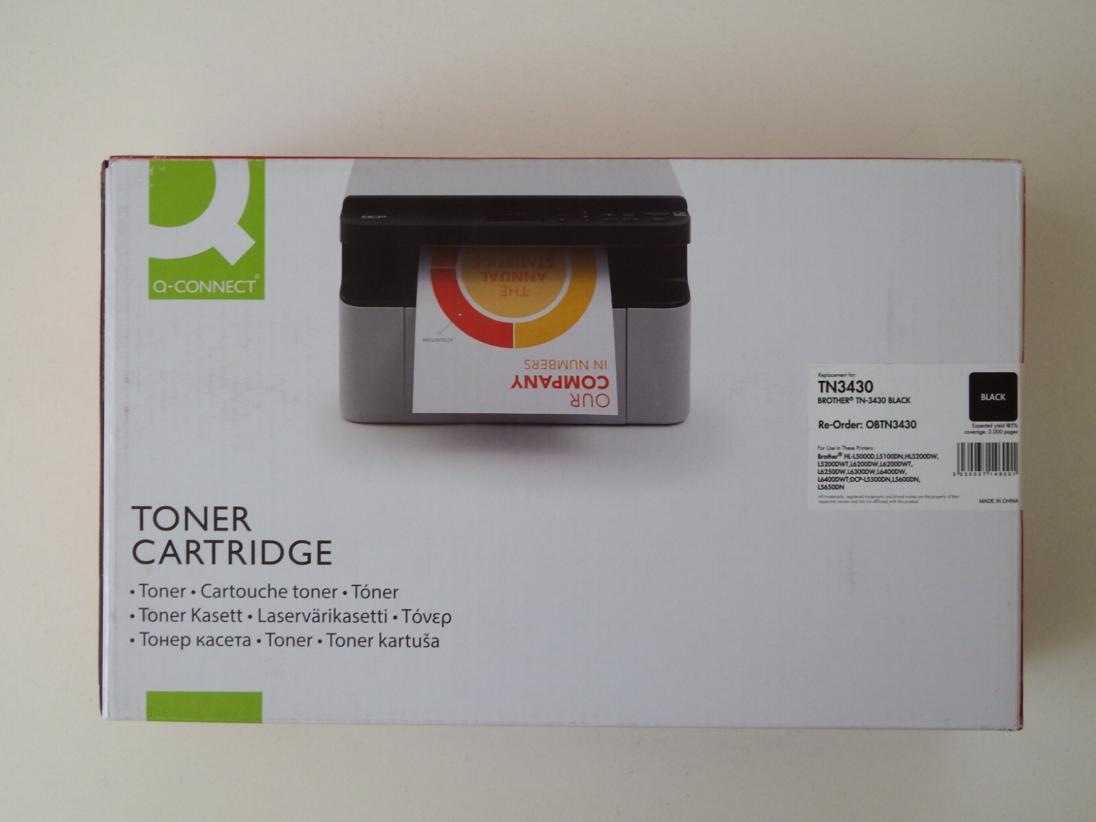 Q-Connect Black Toner Cartridge TN-3430 for Brother HL-L5000D, L5100DN, L5200DW