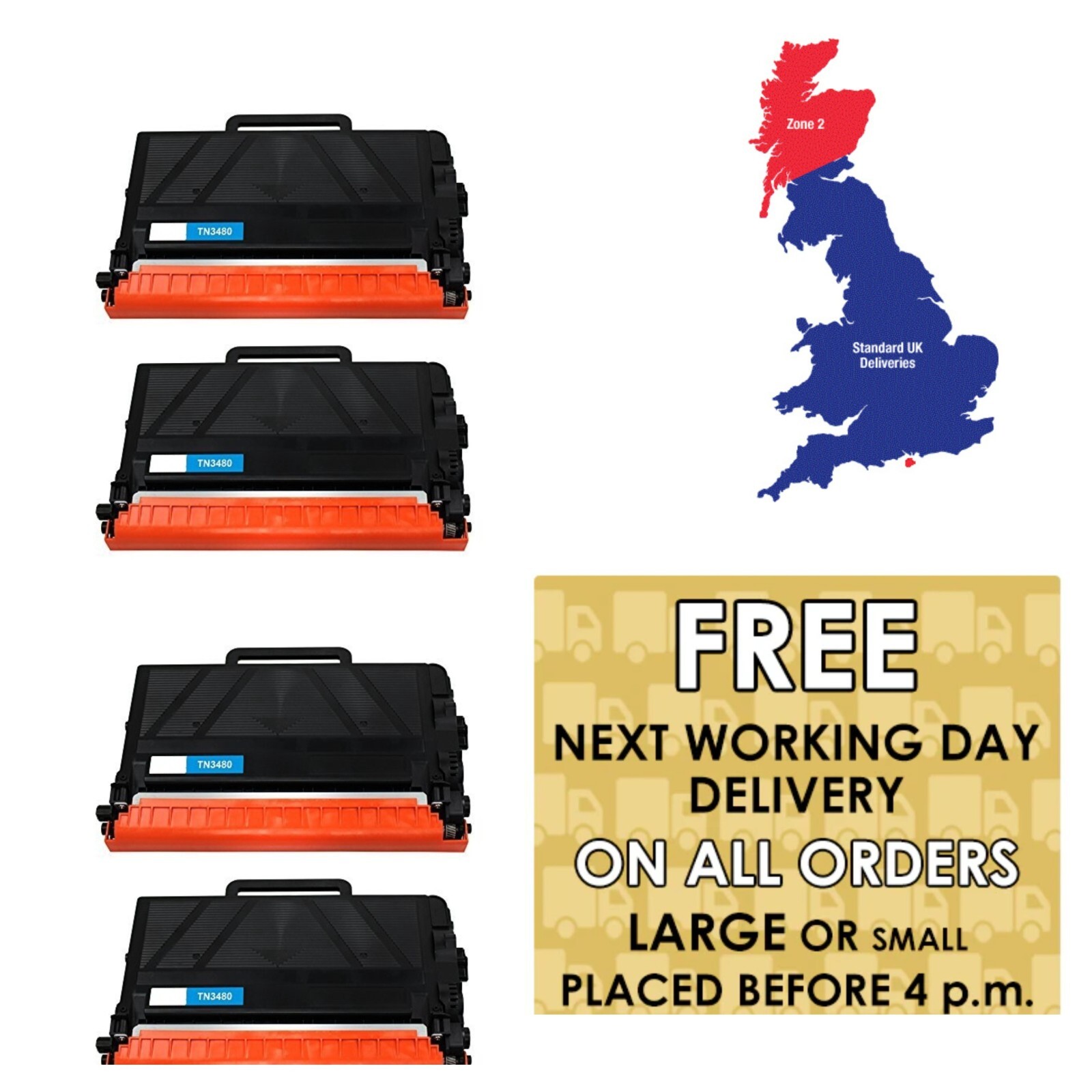 Toner For Brother HL-L6300DWT Printer TN3480 Black Cartridge Compatible 4 Pack