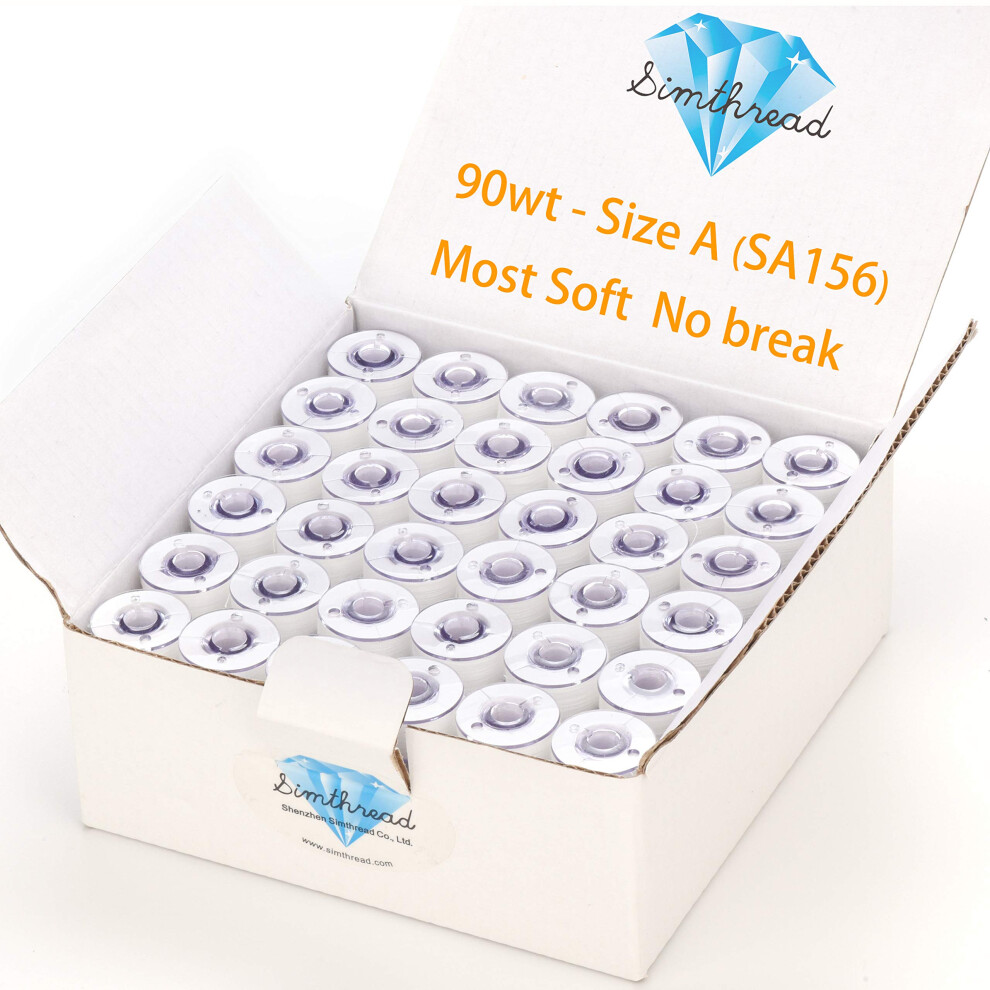 Simthread 144pcs White 90 Weight WT60S/2 Prewound Bobbins Thread Size A Class 15 Plastic Sided for Brother Babylock Embroidery Thread Sewing Thread Ma