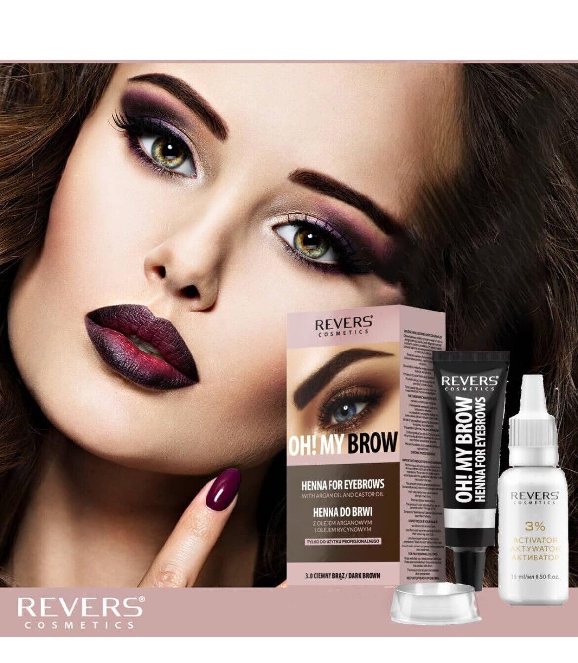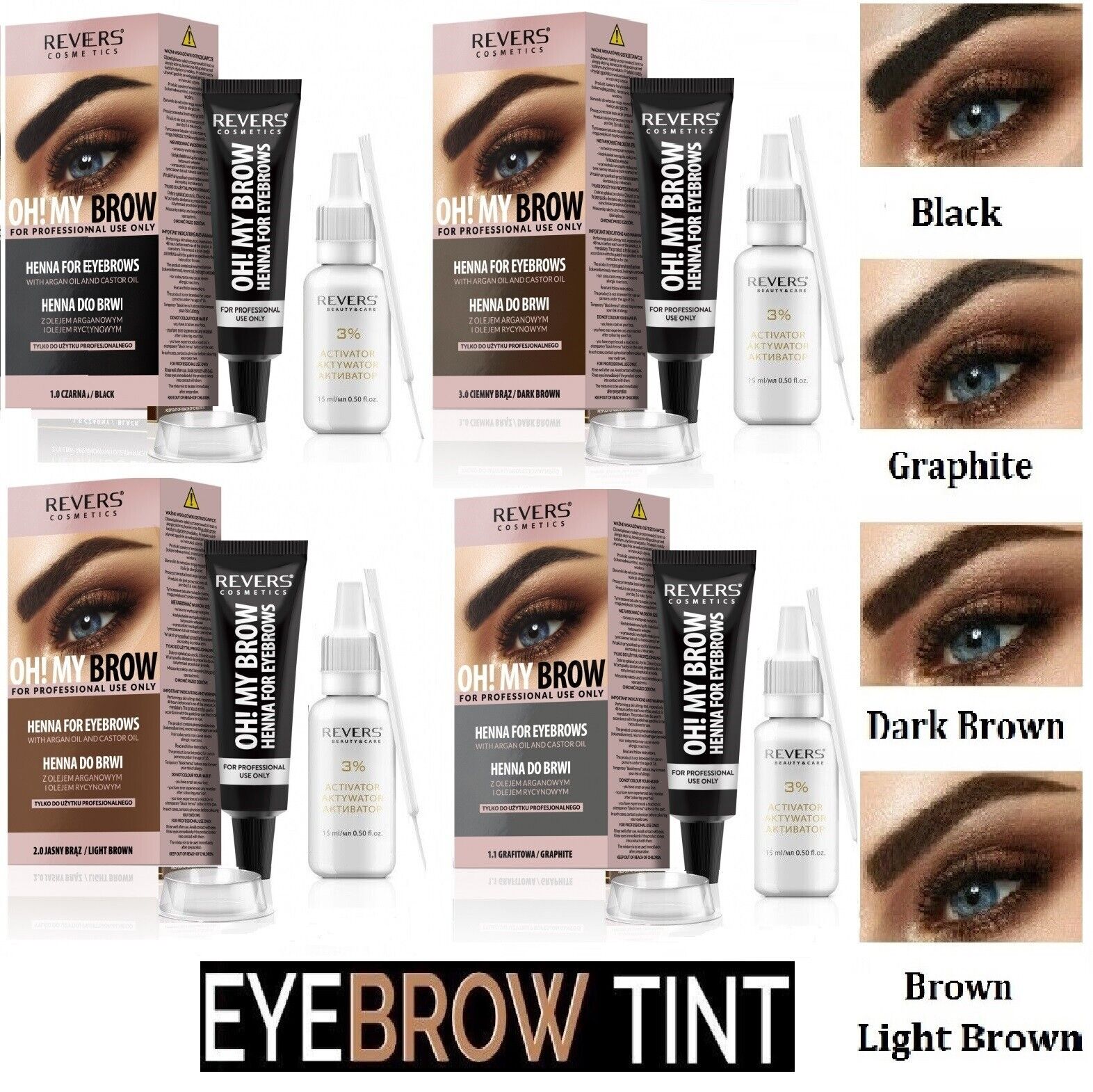 REVERS COSMETICS Eyebrow Dye Kit Dark Brown Ammonia Free, Brow Tint with Argan Oil and Castor Oil, Salon Quality, Natural Result, Lasts Up to 4 Weeks, Up to 15 Applications