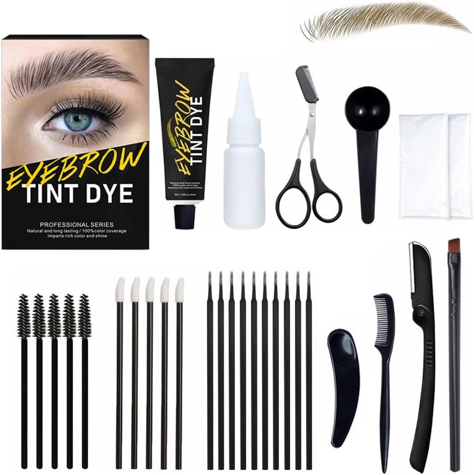 Eyebrow & Lash Tint, Brown Eyebrow Tint Kit, Fast & Easy Brow Dye Starter Kit,