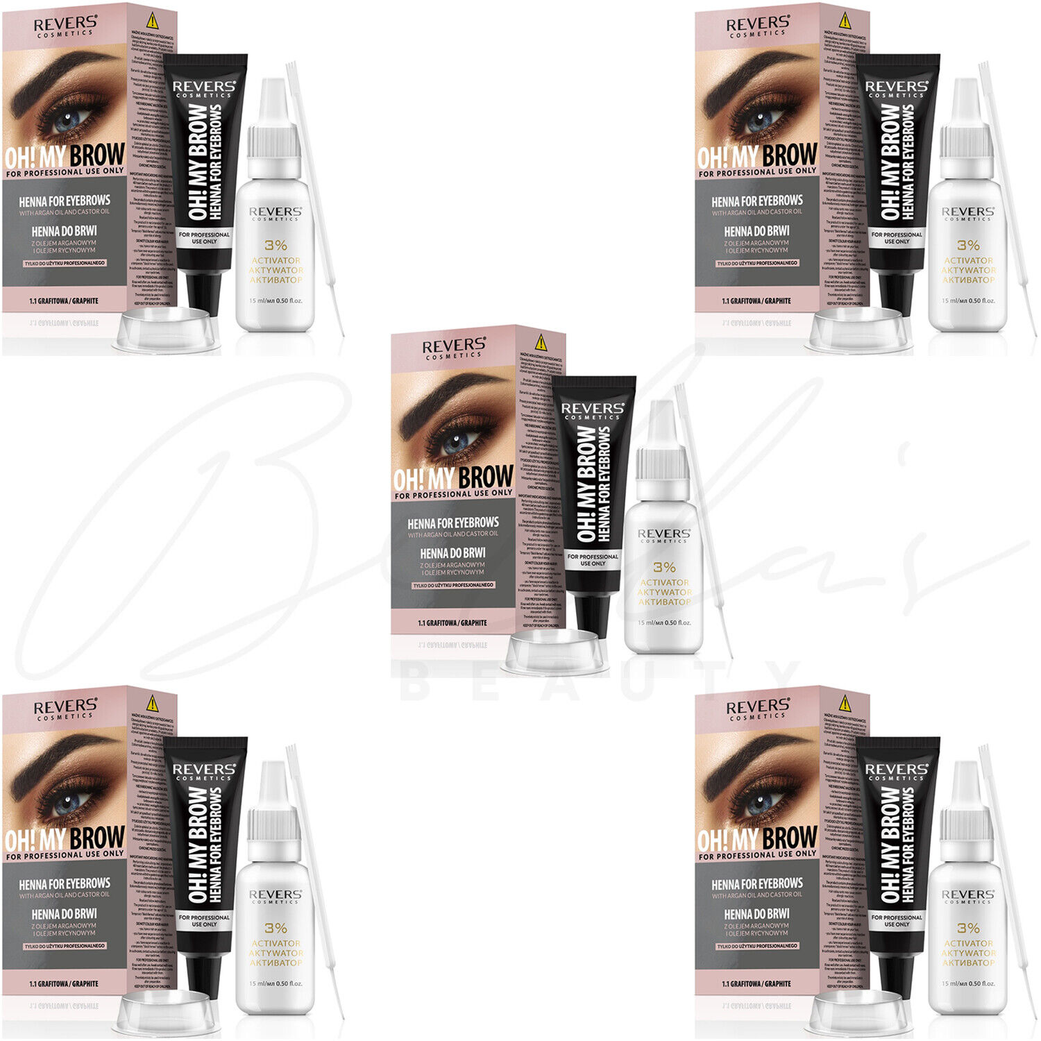 HENNA Eyebrow Eyelash Tint Brow Dye Paint Cream Full Kit Set - Graphite *5 PACK*