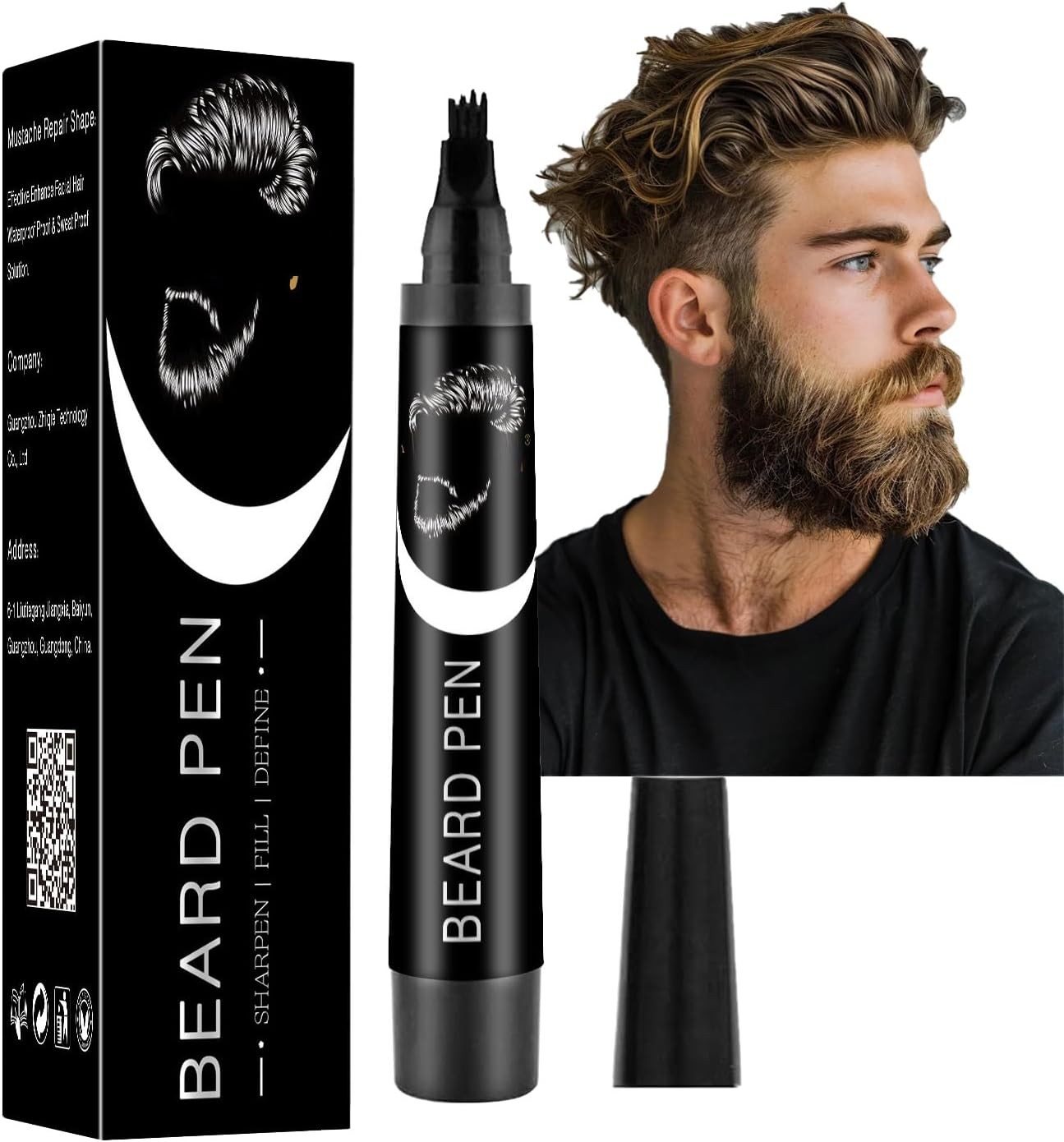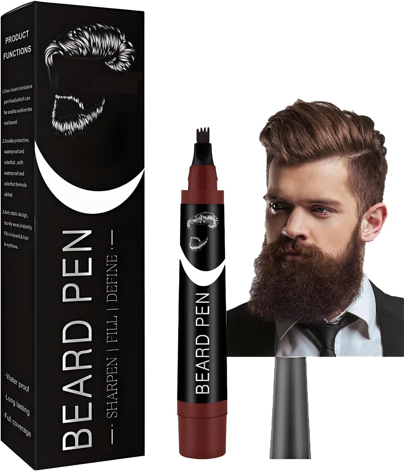 Beard Pencil Filler with Fork Tip, Waterproof Beard Pen for Men, Dye & Brow Enh