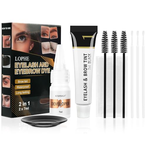 LOPHE Brow & Lash Dye Kit - Black Eyebrow & Eyelash Tint, Formula with Fibres for Full Brows & Volume Lashes