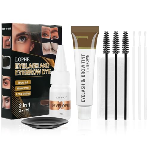 LOPHE Brow and Lash Tint, Brown Eyebrow Dye and Eyelash Tint, Fast & Easy Brow Dye Starter Kit, Formula Brow Tint with Fibres for Plump Thick Lash, Long Lasting Volume Lash Tint and Full Brows