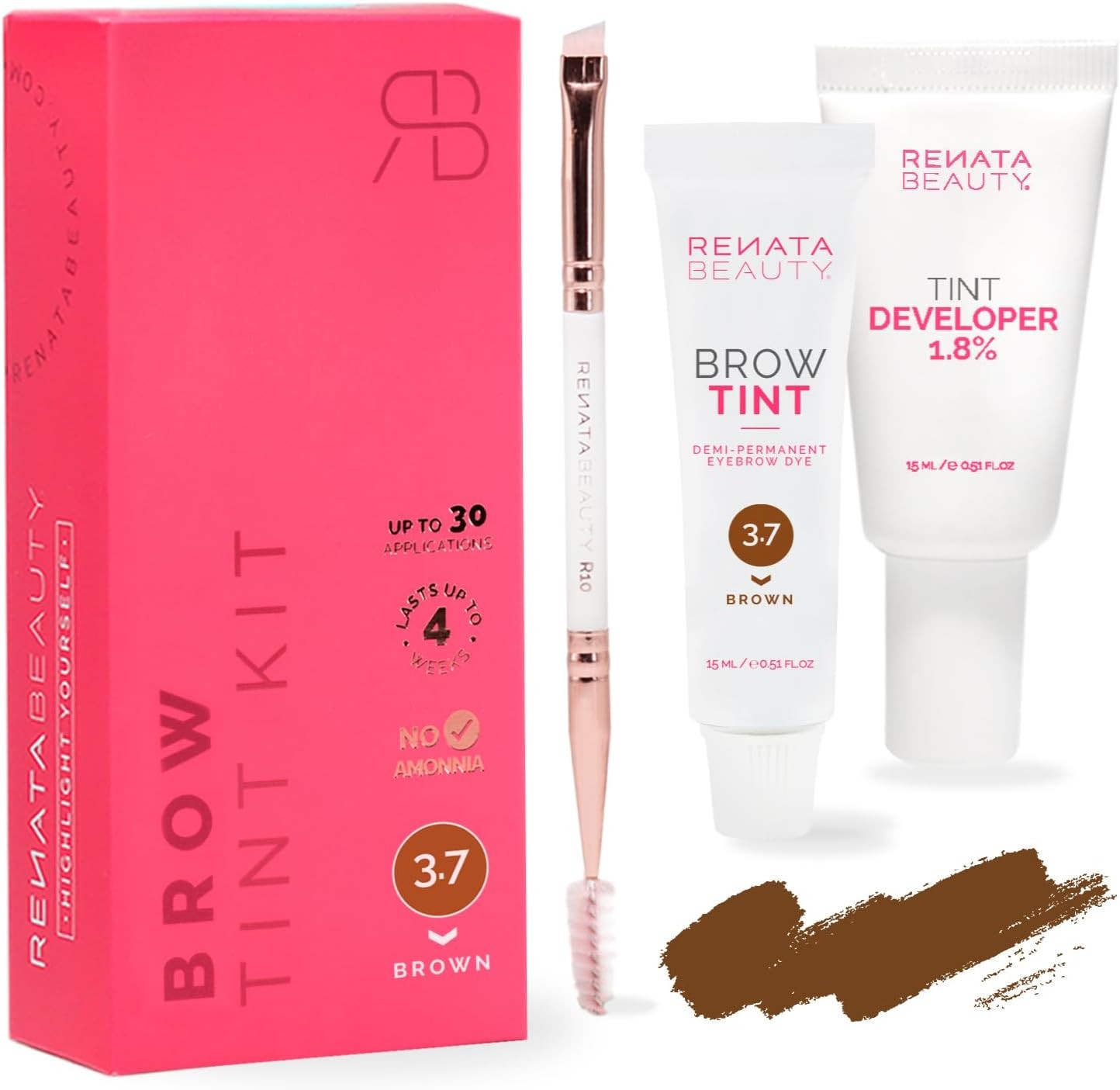 RB RENATA BEAUTY Brow Tint Kit – Eyebrow Tint Set – Dye Kit with Color Tint, Cream Developer and Styling Brush – Long-Lasting Effect Up to 4 Weeks – 30 Applications [Brown]