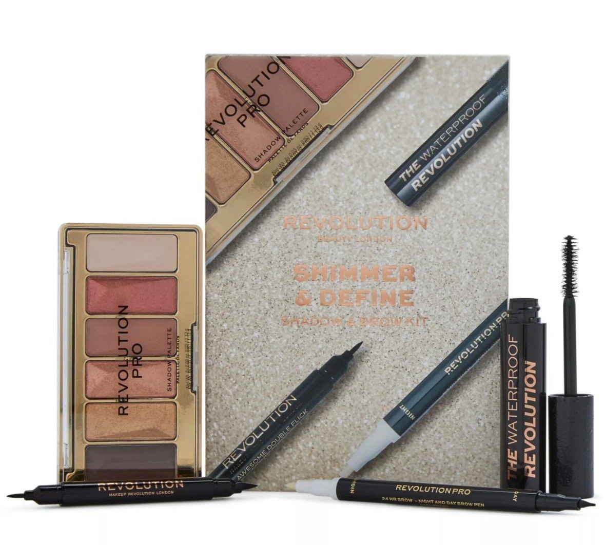 Revolution Makeup Shimmer & Define Shadow Palette and Brow Kit Mascara Eyeliner