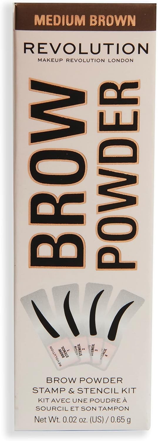 REVOLUTION BROW POWDER STAMP & STENCIL KIT - MEDIUM BROWN