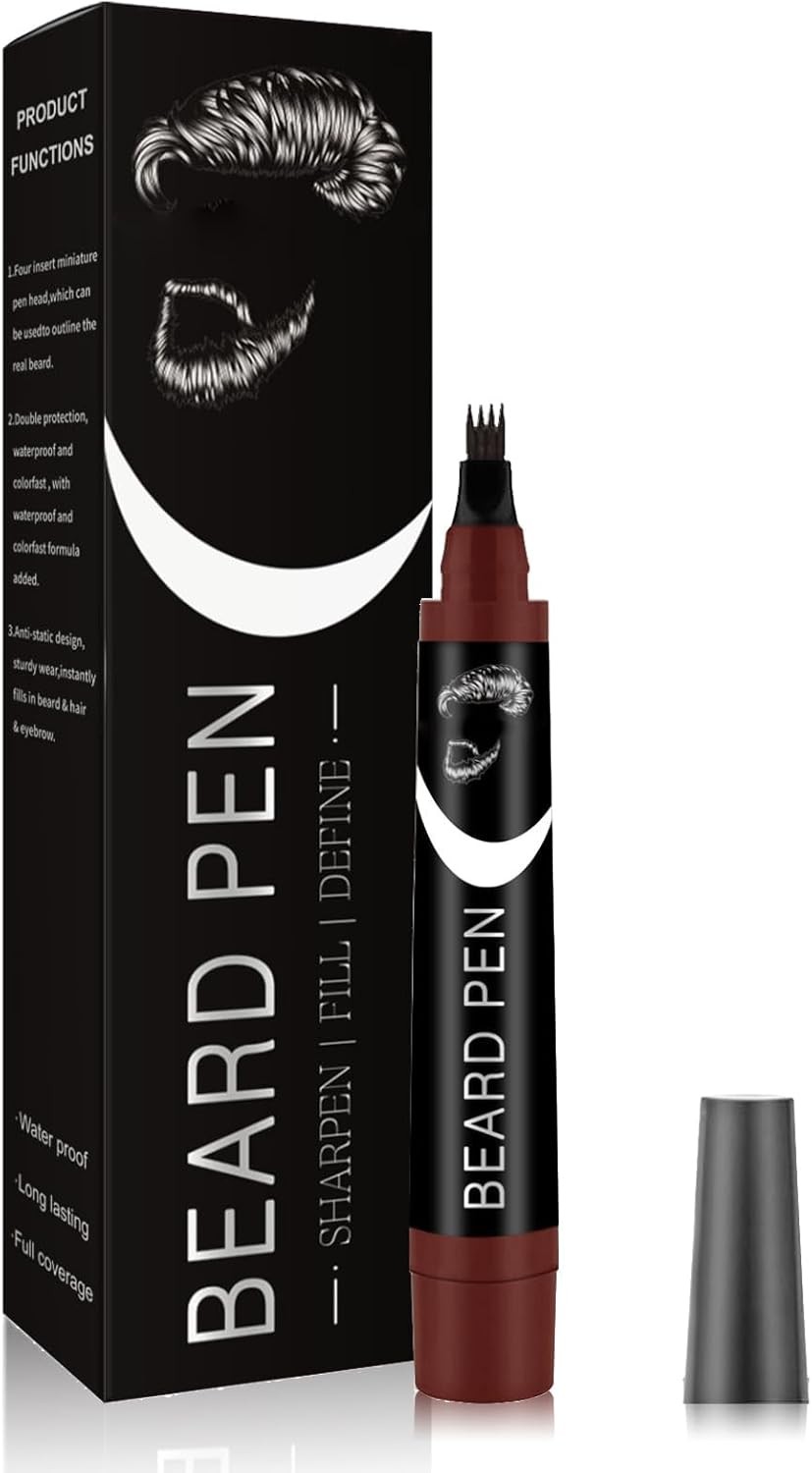 Brown Mens Beard Dye Pen, Beard Filler & Colouring With Waterproof Formula & 4