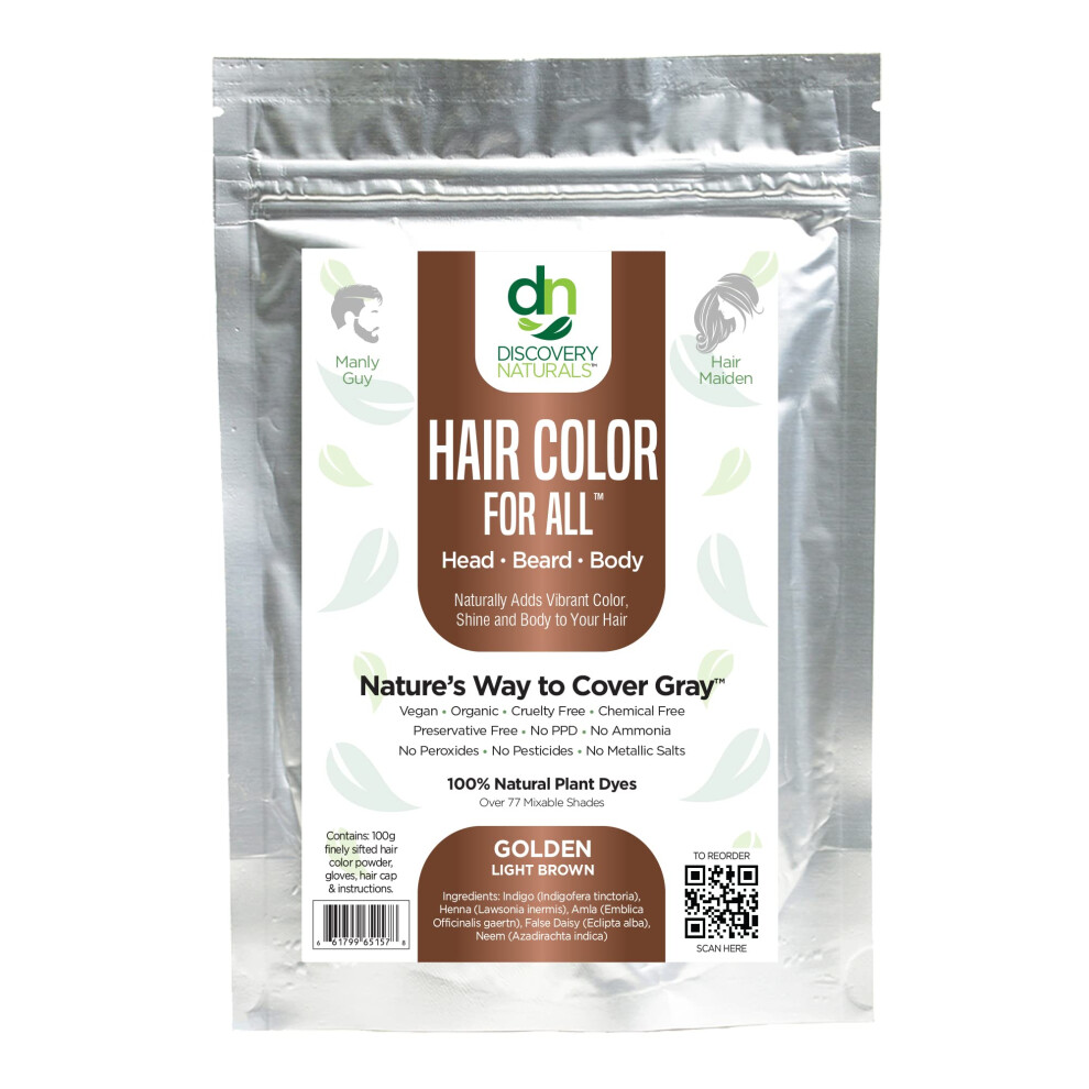 Brown Henna Hair Color For All Kit | 100% All Natural Indigo Powder Hair Dye & Beard Dye (Golden Light Brown) Organic Herbal & Vegan Chemical &