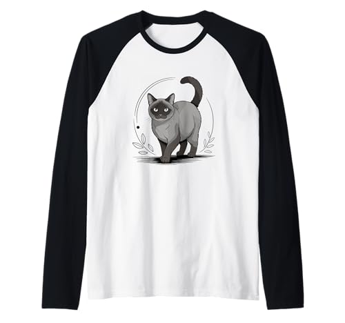 Line Art Havana Brown Cat Minimalist Raglan Baseball Tee