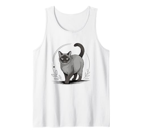 Line Art Havana Brown Cat Minimalist Tank Top