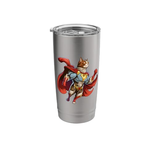 Superhero Brown Cat Red Cape Super Hero Cat Kitty Stainless Steel Insulated Tumbler