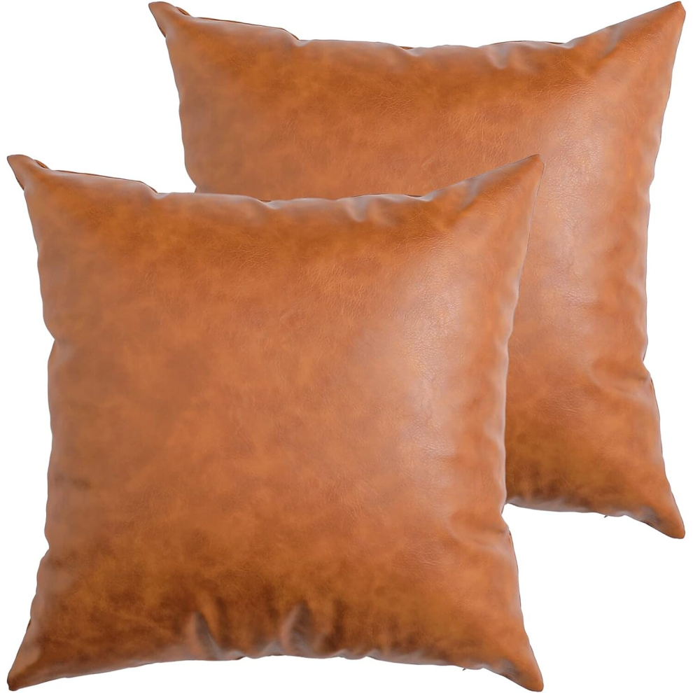 Set of 2 Faux Leather Throw Pillow Covers, Modern Brown Outdoor Cushion Covers Decorative Pillowcases for Couch Bed Sofa (18 x 18 Inches)