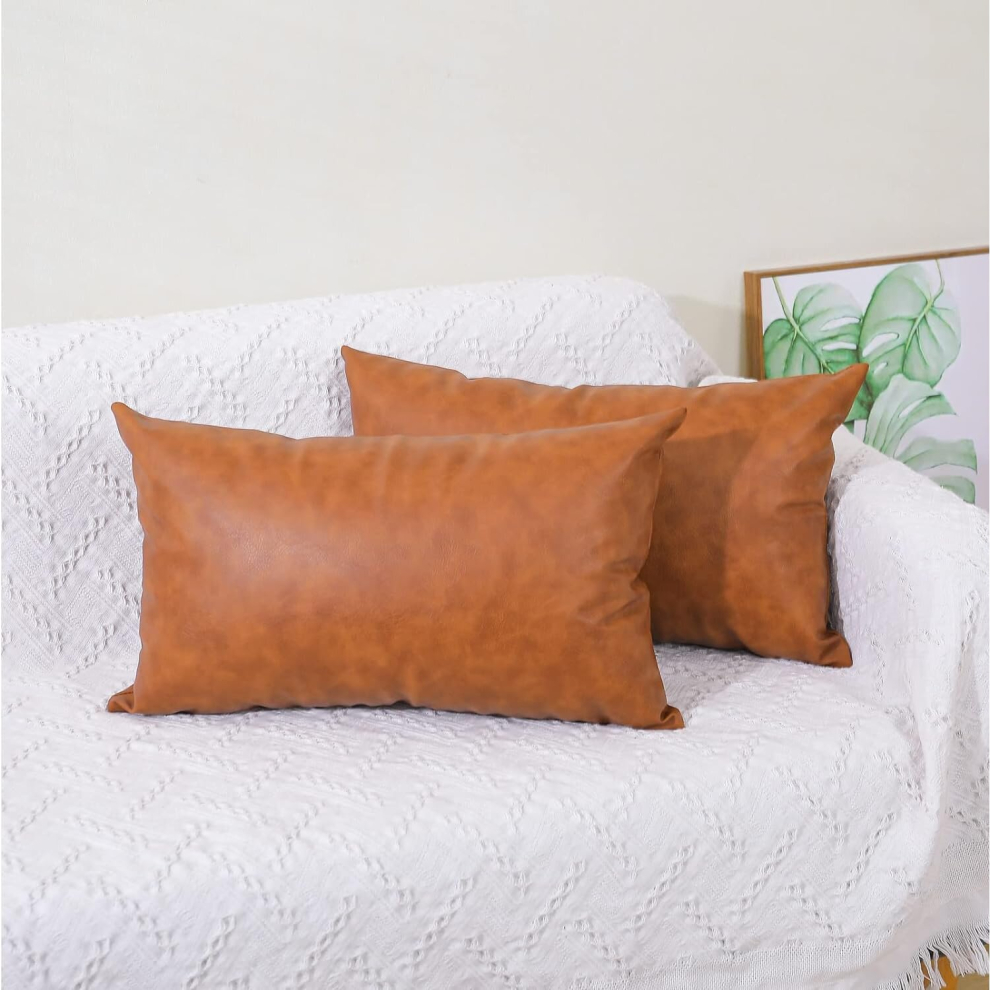 (As show, One size) Set of 2 Faux Leather Throw Pillow Covers, Modern Brown Outdoor Cushion Covers Decorative Pillowcases for Couch Bed Sofa (12 x 20