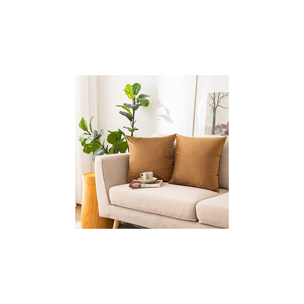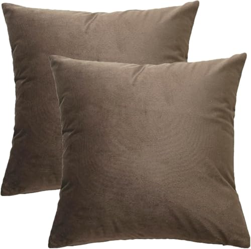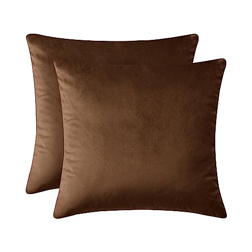 Oxford Homeware Brown Cushion Covers 45cm x 45cm (Pack of 2) Cushions with Covers Included – Decorative Velvet Cushions for Living Room Sofa Bedroom with Invisible Zipper, 18 x 18 Inches