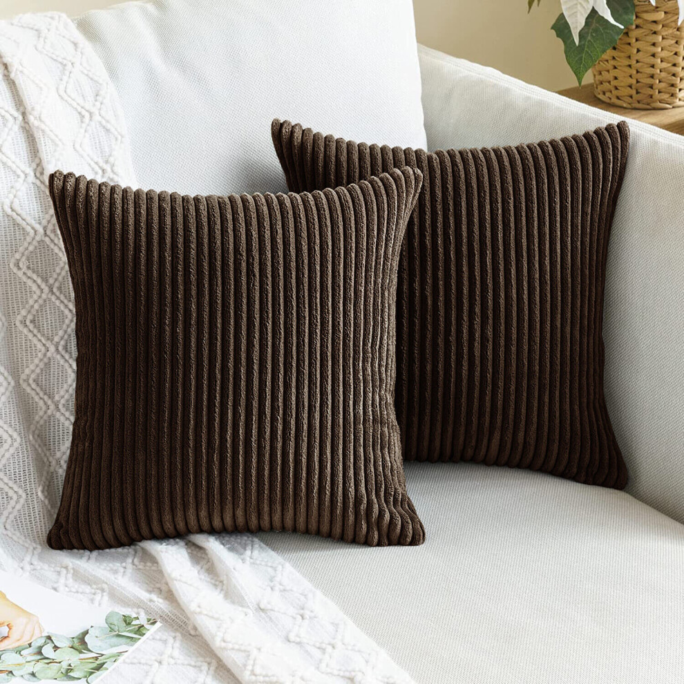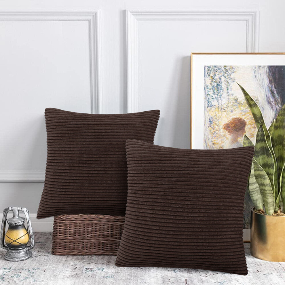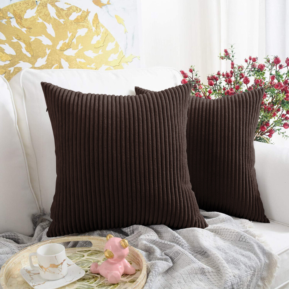 (Pack of 2, Brown Coffee Plain) Cushion Covers Stripe Velvet Cushion Cover Pack of 1, 2 & 4