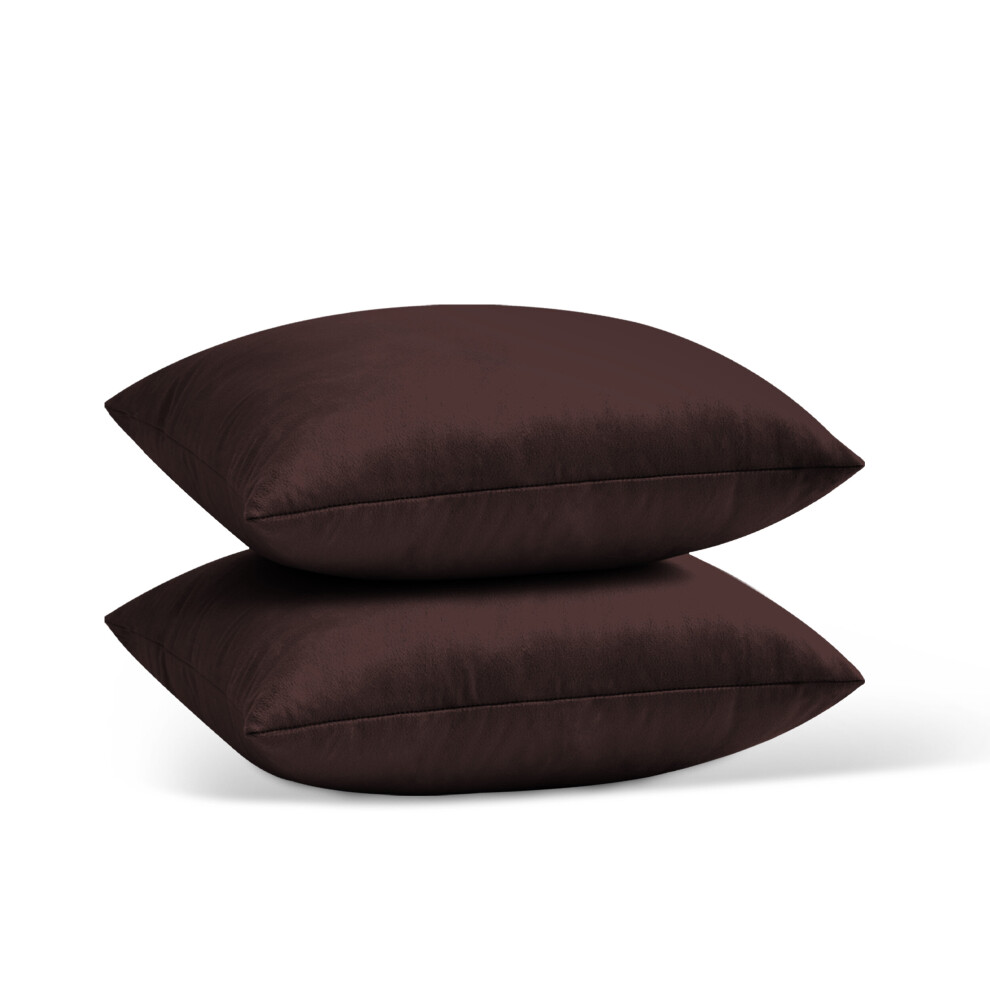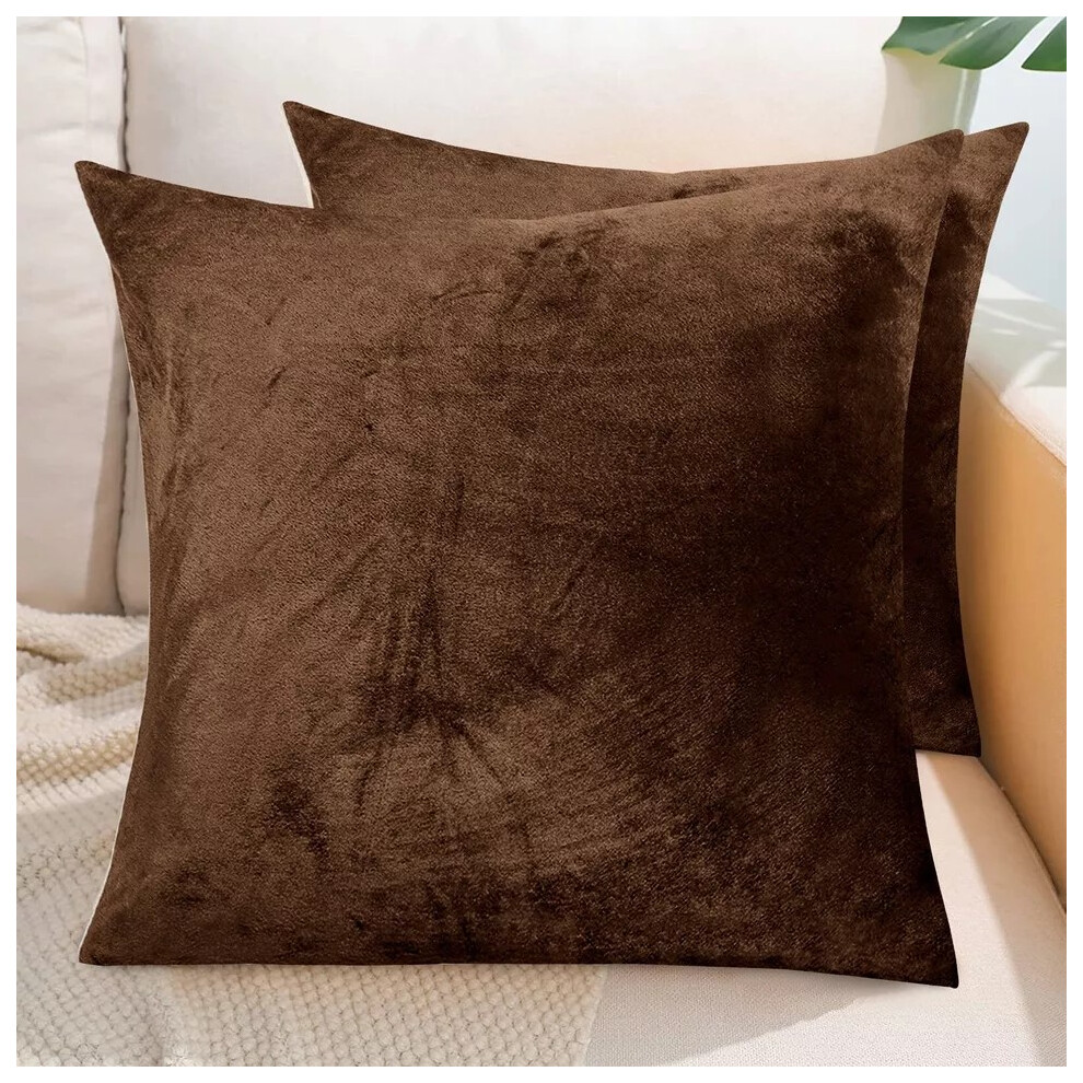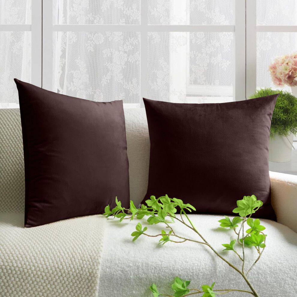 (Pack of 2 , Coffee Brown) Plain Velvet Cushion Covers-Premium Quality Super Soft Pillowcases for Bed, Sofa & Living Rooms