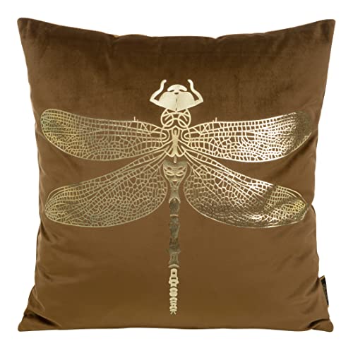 Eurofirany Elegant Velvet Cushion Covers Decorative Cushion with Print 45 x 45 cm Cover Velvet Cushion Cover Soft Sofa Cushion Dragonfly Brown