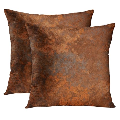 Emvency Set of 2 Throw Pillow Covers Case Brown Copper Old Rusty Metal High Resolution Orange Rustic Decorative Pillowcase Cushion Cover for Sofa Bedroom Car 18 x 18 Inches, PTR383195377-SD2-28
