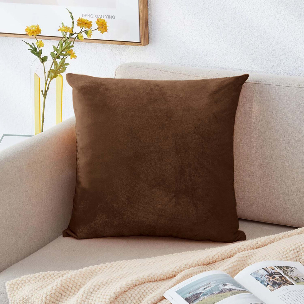 (Single Pack, Coffee Brown) Plain Velvet Cushion Covers-Premium Quality Super Soft Pillowcases for Bed, Sofa & Living Rooms