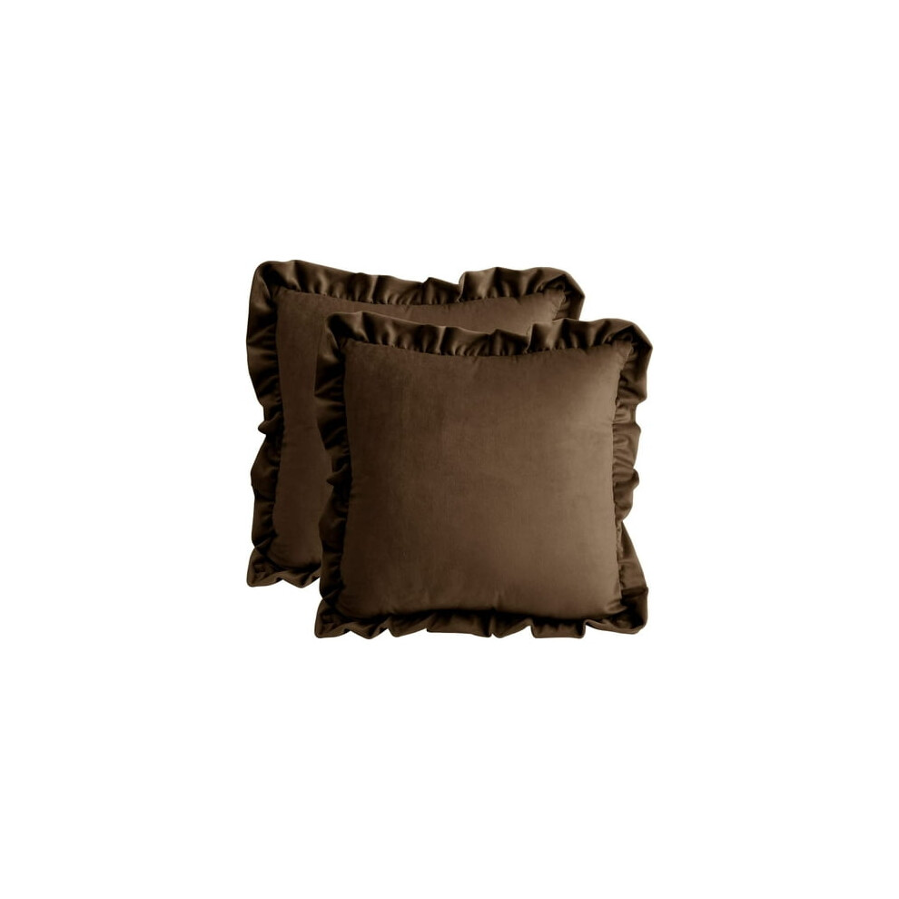 (As show, One size) SZTXJ Set of 2 Brown Ruffle Cushion Covers 45x45 cm Home Decorative, Velvet Pillowcase for Sofa, Bedroom, Car
