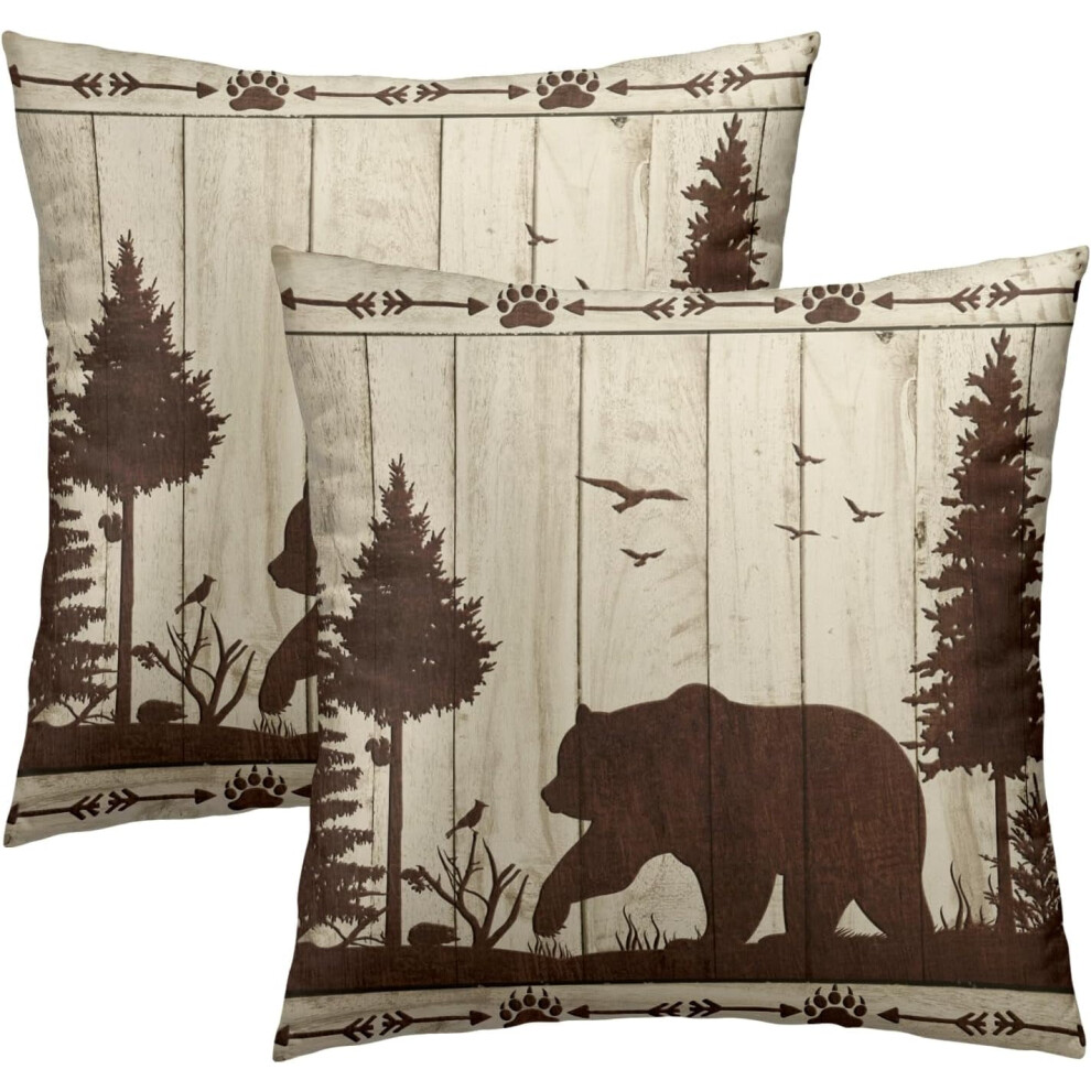 Bear Throw Pillow Covers Set of 2, Soft Wild Animal Rustic Wood Grain Cabin Brown Decorative Cushion Covers for Couch, Sofa, Indoor/Outdoor,