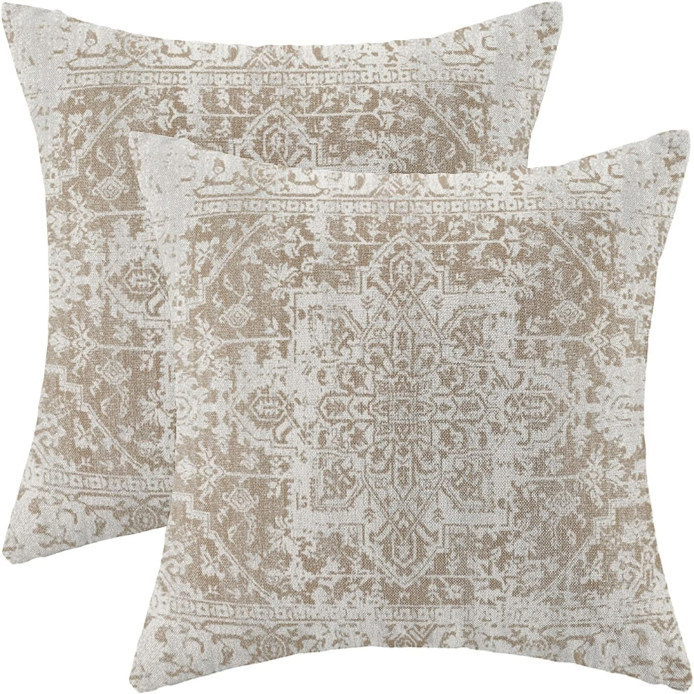 Boho Pillow Covers 16x16, Set of 2, Ethnic Linen Outdoor Throw Pillows, Brown Farmhouse Cushion Covers for Sofa & Couch Decor