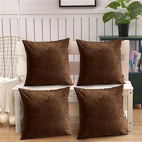 Oxford Homeware Brown Cushion Covers 45cm x 45cm (Pack of 4) Decorative Velvet Cushions Cover for Living Room Sofa Bedroom with Invisible Zipper, 18 x 18 Inches