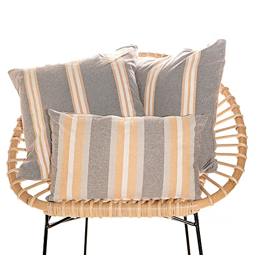 AELS 18x18 Decorative Farmhouse Linen Throw Pillow Covers, Boho Textured Pillow Case, Set of 2, Beige with White & Brown Stitch Yarn Dyed Stripe Cushion Cover for Sofa Couch Living Room (Cover ONLY)