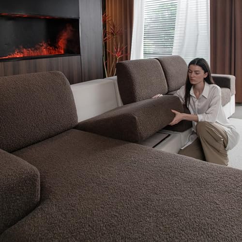 OHSIO Sofa Covers for Sectional, Stretch Cushion Cover, Soft Flexible Non-Slip Slipcovers, Washable Wear-Resistant Sofa Seat & Furniture Protector(1 x Oversized Cover, Brown)