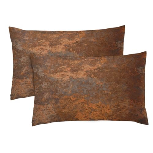 Emvency Set of 2 Throw Pillow Covers Case Brown Copper Old Rusty Metal High Resolution Orange Rustic Decorative Pillowcase Cushion Cover for Sofa Bedroom Car 12 x 20 Inches