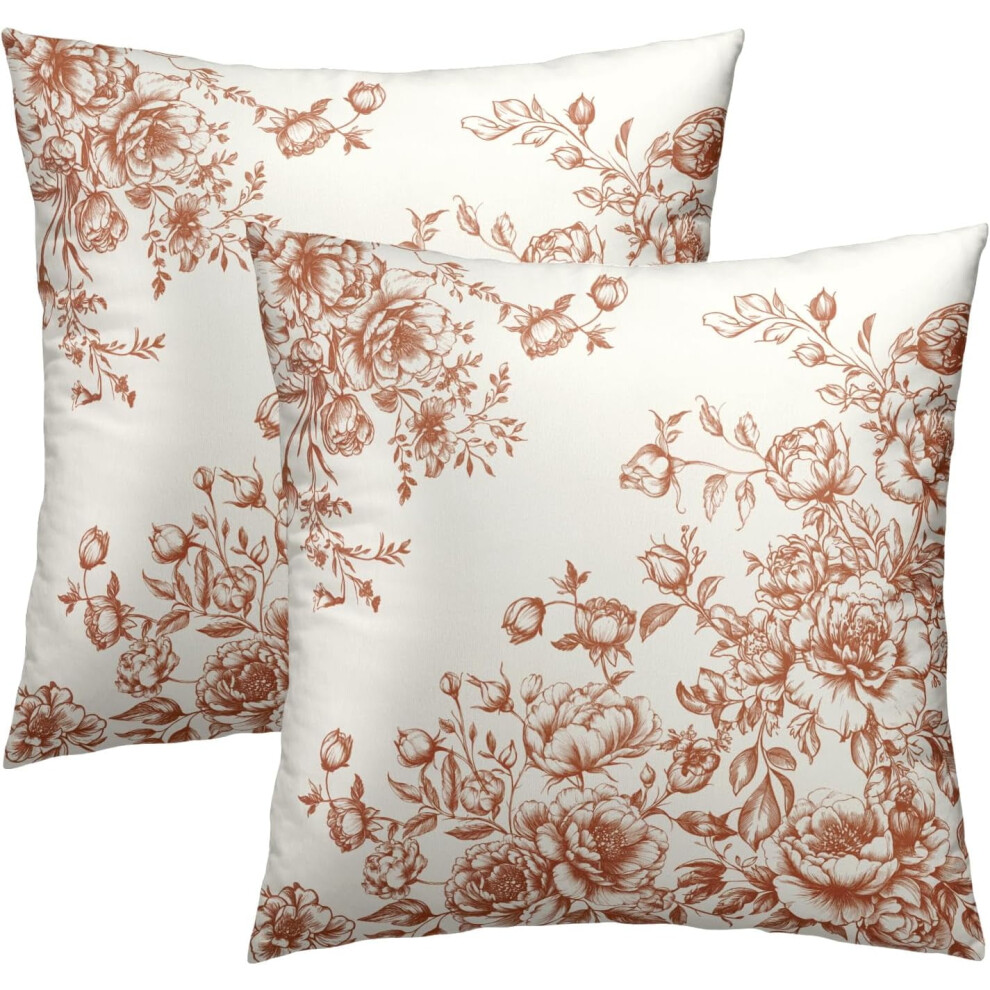 Vintage Floral Pillow Covers 20x20", Set of 2 Brown Grandmillennial Throw Cushion Covers with Zipper, Indoor/Outdoor Decor