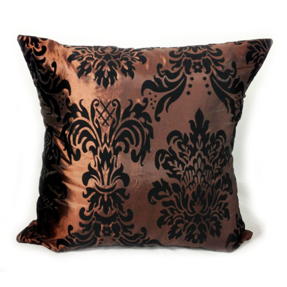 (BROWN) CUSHIONS CUSHION COVERS LARGE FLOCK DAMASK COVERS 9 LOVELY COLOURS