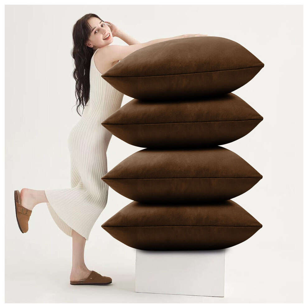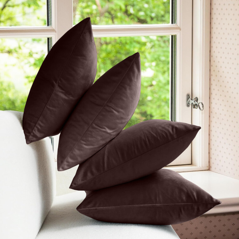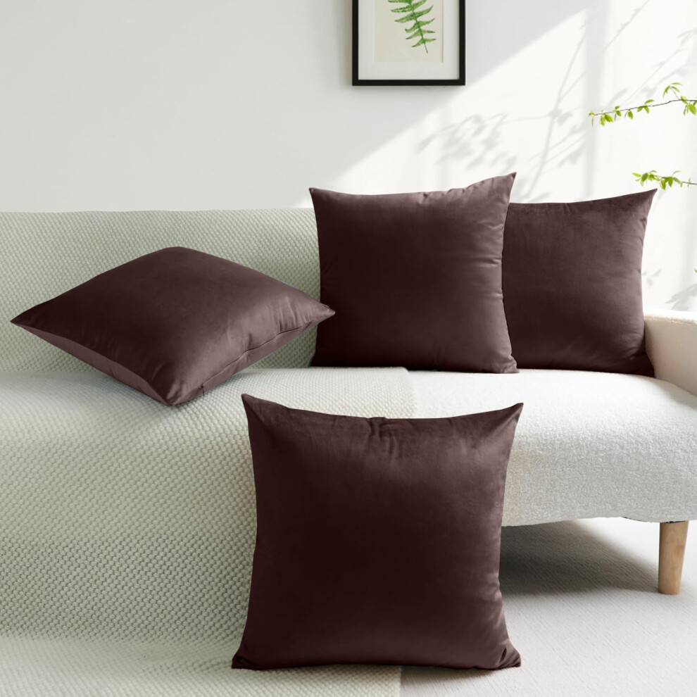 (Pack of 4, Coffee Brown) Plain Velvet Cushion Covers-Premium Quality Super Soft Pillowcases for Bed, Sofa & Living Rooms