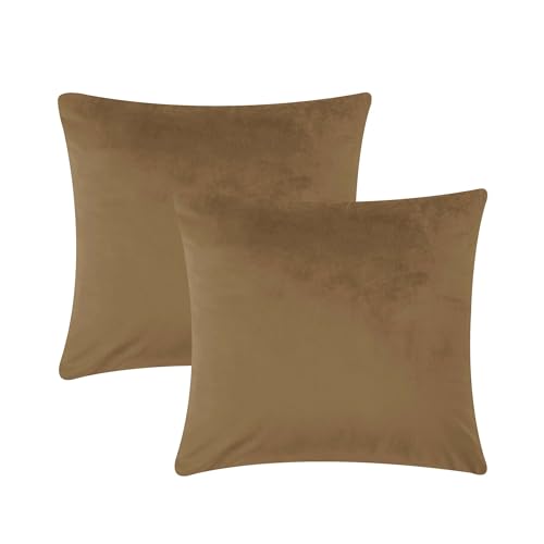AMEHA Cushion Covers 45 x 45 cm (Pack of 2) Decorative Velvet Square Throw Pillow Cases 18 x18 Inches Cushion Cover for Sofa Couch Bedroom with Invisible Zipper (Brown)