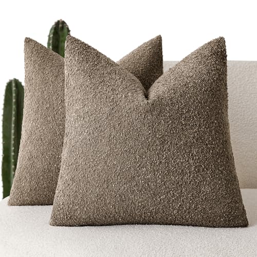 Foindtower Pack of 2 Textured Boucle Throw Pillow Covers Accent Solid Decorative Pillow Cases Cozy Woven Couch Cushion Case for Sofa Bedroom Living Room Home Decor, 20 x 20 Inch,Dark Brown