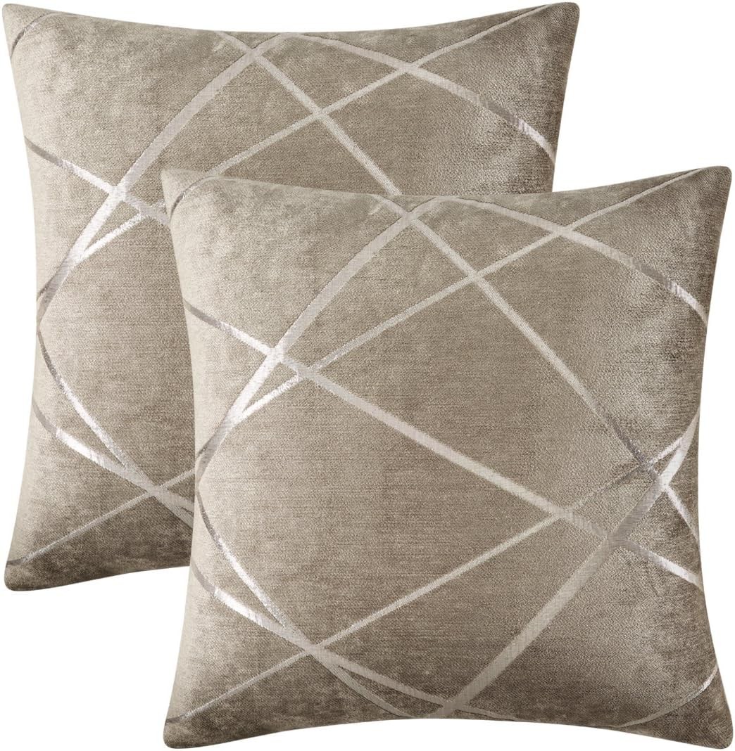 Madizz Pack of 2 Super Soft Velvet Decorative Cushion Covers with Texture Luxury Style Throw Pillow Cases Pillow Shell for Sofa Bedroom Square Brown 18x18 inch