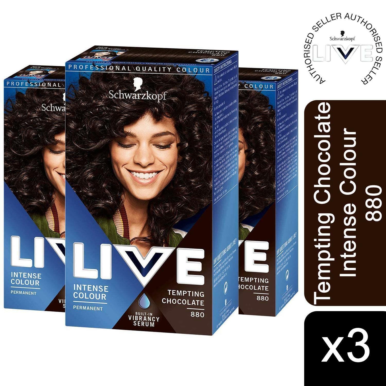 3x LIVE Tempting Chocolate Brown Permanent Hair Dye, Intense Colour 880